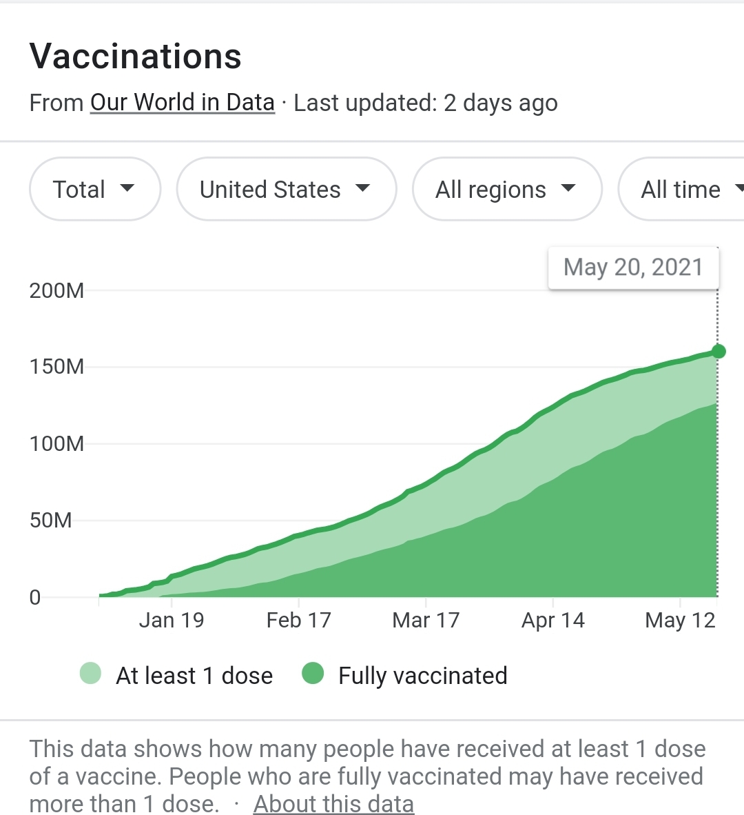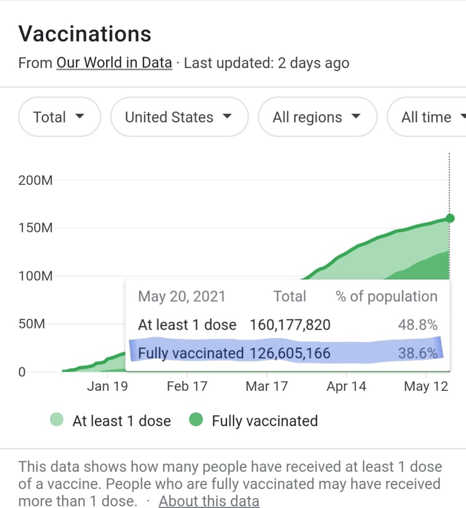 The part highlighted is the most important part: the fully vaccinated. There needs to be a population of at least 70% fully vaccinated to count as “herd immunity” against Covid. Herd Immunity is, as explained by Oxford dictionary, “resistance to the spread of an infectious disease within a population that is based on pre-existing immunity of a high proportion of individuals as a result of previous infection or vaccination.” As you can see on the graph above, we are at 38.6% Fully Vaccinated. And less than half of the nation has at least one shot of vaccinations. Some are indeed refusing their second dose because of how bad the effects the first one was for them, others are very “one and done” and thus do not want their second shot. Being half vaccinated in the nation that has the most Covid cases and deaths in the world and wanting to live, frolic and free, is not a great idea. Partial vaccinations can make it easy for the coronavirus to become vaccine resistant as it interacts more and more with half-vaxxed bodies. Plus the immunity wanes a little bit in the body since it is not at full capacity. This is why people who are considered half vaxxed are still told to wear a mask and adhere to pandemic protocols. Yes, it is not common for viruses to out-pace their vaccines but also Covid has proven to be rather uncommon. Also, there’s the people factor that still gets forgotten in super science pieces: the people who still catch and spread Covid are still real and their lives are still impacted. There still research underway about long haul Covid, which affects a lot of people who have caught Covid. Heck, for example, there is zero clue to as how a child that has caught Covid will do in school or in life due to long haul symptoms such as brain fog, weaker vital organs and upped chances for things like stroke before adulthood because of how Covid affects the brain. In other words, if you brought covid home to your kid, congrats, you may have done a superb neuter to their future and quality of life. At least they might not live long enough to really be that upset, perhaps. Wear a mask, social distance and get fully vaccinated. If you are an essential worker, please be careful for yourself and others. If you are not an essential worker (you don’t work in transport/delivery, food or public healthcare), stop being stupid and stay home. The important part is to try to wipe out Covid, not help it get stronger and mutate better.