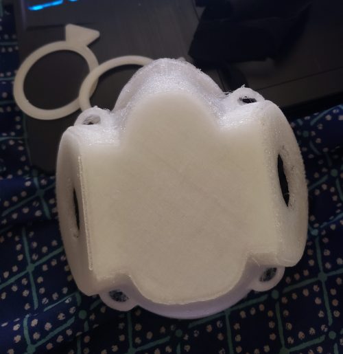 Another mask I did was printed in flexifilament, TPU material. It is a bit of a pain because I dislike printing in TPU, it has wisps while printing and after production is annoying. But it is useful due to its squishy nature.
